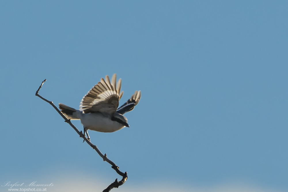 Aus der Entfernung habe ich ihn entdeckt - schillernd wie eine Mücke im Gegenlicht. Beobachtet was nun sein "Lieblingsansitz" sein könnte. Als das einigermassen klar war, habe ich mich immer näher an diesen Baum herangetastet und dort mein Lager aufgeschlagen. Lange hat mich der Raubwürger warten lassen, immer wieder hat er den Ansitz gewechselt, war mal da und mal dort. Aber ich wollte unbedingt diese Gegenlichtaufnahme. Ab- oder Anflug war mir dann schon egal. Hauptsache einigermassen so wie ich es mir vorgestellt habe. Nach gefühlt endloser Zeit hatte ich einige Aufnahmen im Kasten. Nicht ganz perfekt aber knapp dran.