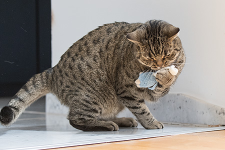 Das ist ein echtes Katzen-Eldorado hier. Überall liegt Spielzeug herum - man stolpert ja fast drüber. Soooo viele kleine Mäuschen und alle wollen gejagt werden. Dabei kann ich viel lernen. Jetzt weiss ich ja auch schon wie ich meine Krallen einsetzen muss - entweder um auf die Couch zu kommen, Spielzeugmäuse zu töten oder einfach nur, um dem Herrchen ein Stückchen näher zu sein (falls er mal nicht am Boden liegt). Einfach seine Beine anspringen, Krallen ausfahren und schnell raufziehen ..... Funktioniert fast immer.