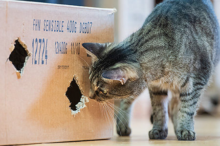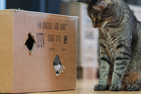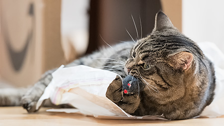 Die Papiertüte vom Fleischer und das Mäuschen. Paulchen ist ganz in seinem Element.